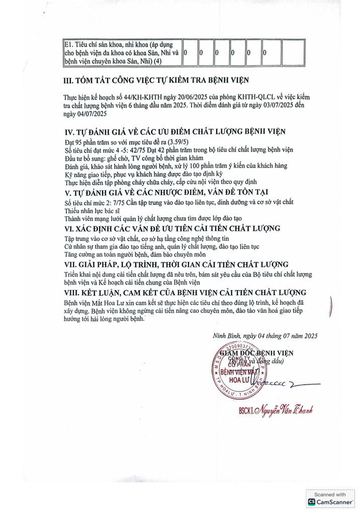 Được viết bởi: benhvienmathoalu Ngày đăng: 05/07/2025 Bệnh viện Mắt Hoa Lư đánh giá chất lượng bệnh viện 6 tháng đầu năm 2025